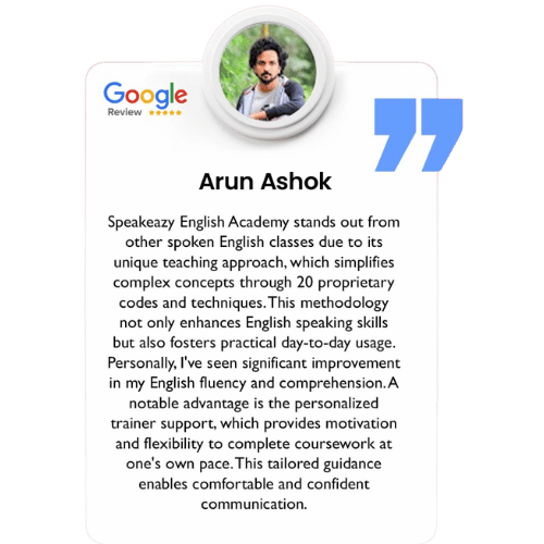 Acknowledged by leading Indian media and honoured with multiple awards and recognitions, Speakeazy English Academy stands at the pinnacle of language education, setting benchmarks for excellence and innovation. While our headquarters proudly reside in Dubai, our reach extends far and wide through our branches across Kerala, affirming our commitment to delivering unparalleled language education to diverse learners. Join us at Speakeazy, where language mastery intertwines with personal growth, unlocking boundless opportunities on your transformative learning journey.